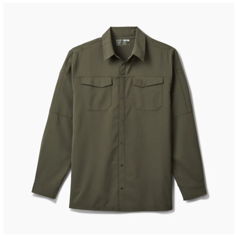 The Freedom Flex Woven Shirt from 5.11 Tactical utilizes an innovative new woven design that offers superior indoor and outdoor comfort in a broad range of job environments. Featuring a unique perforated fabric under the arms, at the sides, and across the back, the Freedom Flex provides dramatic increases to both breathability and freedom of movement. Extra wide pen pockets on each sleeve and dual chest patch pockets offer plenty of storage space, and lightweight construction helps keep you cool and comfortable all day long.Improved ventilation and mobilityMoisture wicking actionExtra wide pen pockets on each sleeveDual chest patch pocketsBuilt from lightweight 3.9 oz. polyester stretch fabricPerforations at underarms, sleeves, and backBartacking at major stress points Snap closure at collar