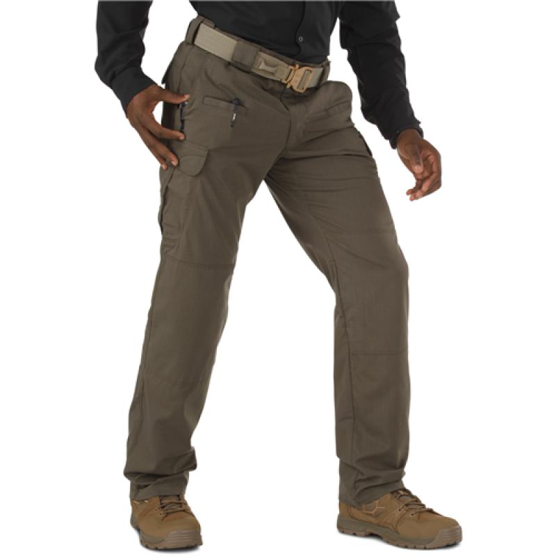 Our newest multipurpose range pant, the STRYKE Pant is crafted from 5.11 Flex-Tac fabric, a specialized proprietary blend of mechanical stretch polyester and cotton engineered to provide extreme durability and performance in the field. A self-adjusting tunnel waistband, articulated knees, and a full gusseted crotch offer a snug fit while increasing agility and ensuring full freedom of movement. The Stryke Pant features front hip pockets sized for a knife or cell phone, double-deep and double reinforced cargo pockets, integrated knee pad pockets (kneepads sold separately), and badge holders at the left and right front belt loops. Teflon fabric treatment provides superior protection against moisture, stains, and soil, and strengthened bartacking at all stress points provides enhanced resilience that stands up to the toughest operational environments.
