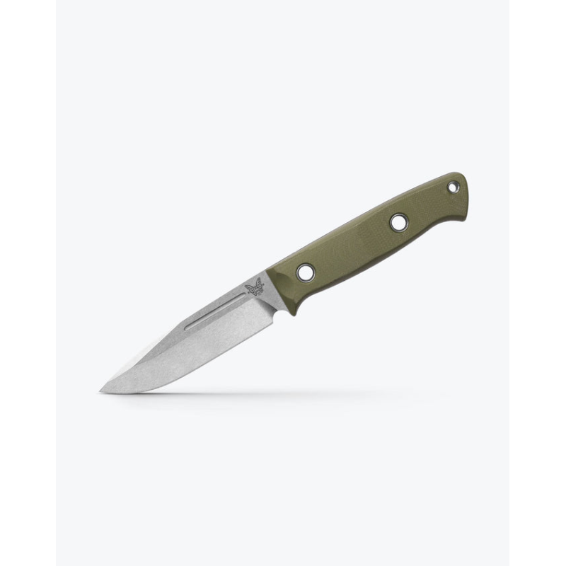 Wilderness survival can hinge on the tools you carry and the 163-1 Bushcrafter is a fresh take on the classic outdoor bushcrafting knife, the most important tool in your kit. With a 4.38†premium stainless steel fixed blade and durable all-weather OD Green G10 handle scales with a Red G10 base layer, the 163-1 Bushcrafter is purpose-built for all manner of heavy duty outdoor tasks including feather sticking, batoning, shelter building as well as food prep. Redesigned with updated blade geometry and handle ergonomics, keep it close by in its belt-carry leather sheath with ferro rod attachment.