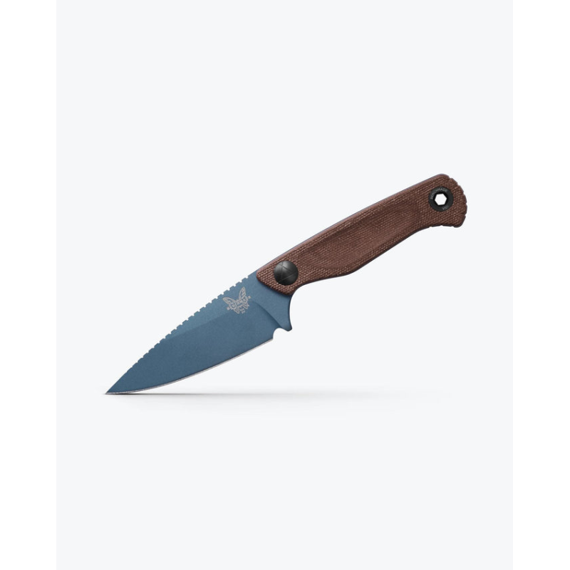 When there's work to be done and the rigors of the day demand a tough, all-purpose fixed blade, the 203BT-03 Dacian is your go-to knife built for everyday utility and outdoor recreation. Featuring super-tough and corrosion-resistant MagnaCut steel in a spear-point blade profile with a Blue Titanium Cerakote finish, the 203BT-03‘s durable brown micarta handle has lateral grooves running the length of the scales for extreme comfort in multiple grip positions. The scout-carry sheath combines the classic look of leather combined with the Boltaron insert that provides strong retention, the Dacian mounts conveniently on the belt for easy access during your daily grind.