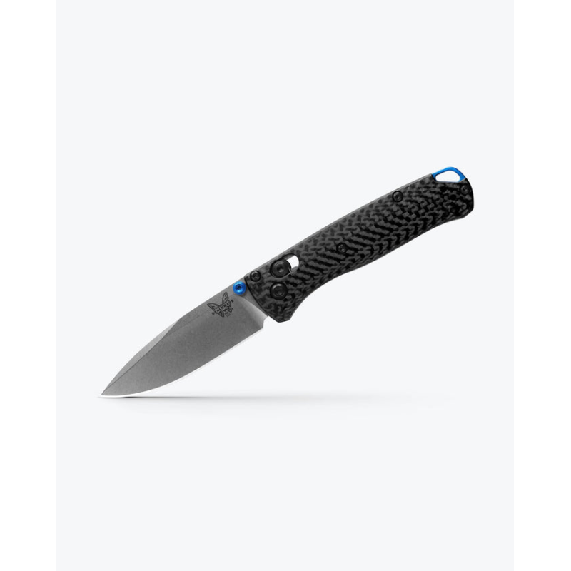 Compact with a touch of class. For those looking to elevate their everyday carry, look no further than the all-new 533-3 Mini Bugout®. Taking cues from its larger counterpart, the 533-3 makes the leap to CPM-S90V super steel and milled carbon fiber handle, featuring a blue anodized aluminum back-spacer and blue thumb studs. Merging signature lightweight utility with ultra-premium materials, the 533-3 Mini Bugout® sets a new standard for this popular line of sub-compact EDC pocket tools.