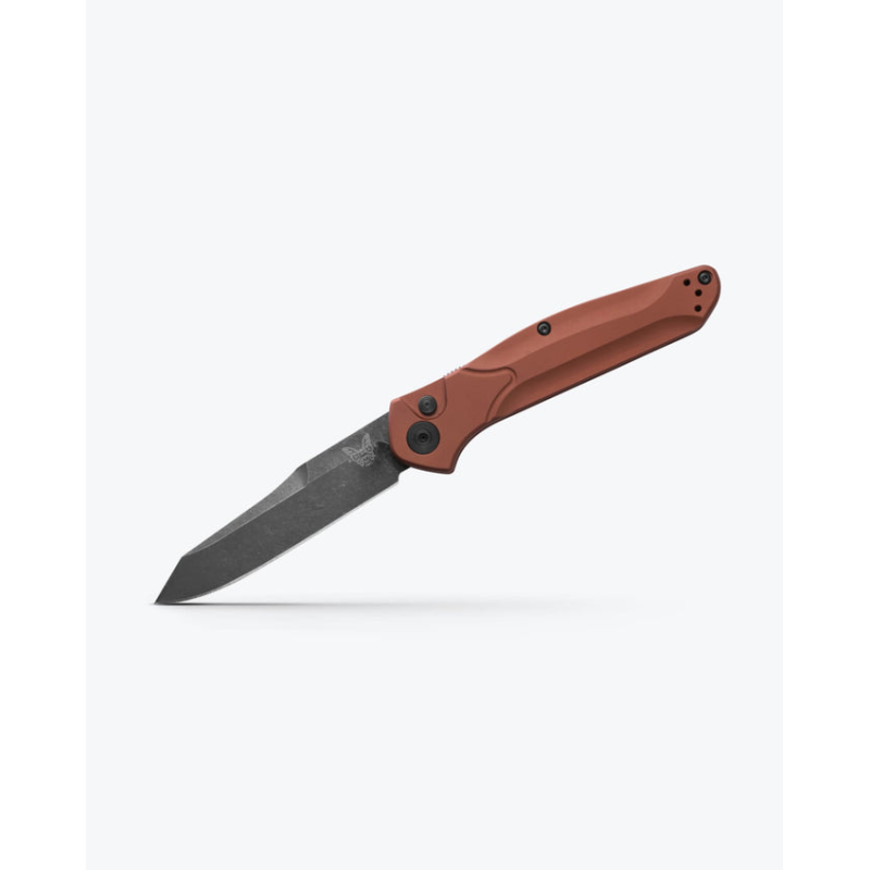 Inspired by overland adventure and stylish daily carry, the 9400BK-03 Auto Osborne is our nod to the rugged folks who enjoy dusty, gritty, challenging trek across natural terrain. Reimagined with fast-deploying push-button automatic action and an integrated spine safety, this latest variant of the 9400 Auto Osborne features a wear-and corrosion-resistant CPM-MagnaCut reverse tanto blade with DLC Battlewash finish. Clad in lightweight Burnt Copper anodized 6061-T6 aluminum handle scales to tackle the outdoors, the 9400BK-03 Auto Osborne combines rapid response and timeless knife design for hardcore exploration