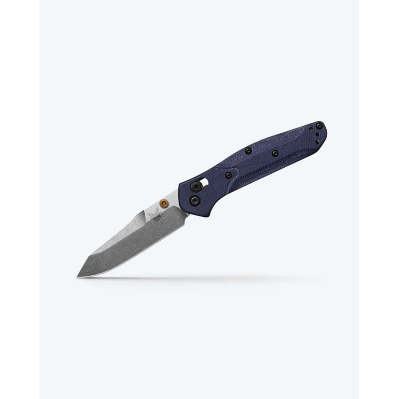 As hardworking and ruggedly handsome as a pair of blue jeans, the new 940-04 Osborne is our nod to those who like to get their hands dirty and boots dusty, just like us. Evolved from the iconic folder that first began as a versatile ranch knife — and seamlessly doubles as the ultimate EDC — the new 945-04 Mini Osborne features an M390 reverse tanto blade with a satin finish. A pared-down version of the full-size Osborne, the 945-04 is kitted out with textured blue denim micarta handle scales and dark copper PVD accents