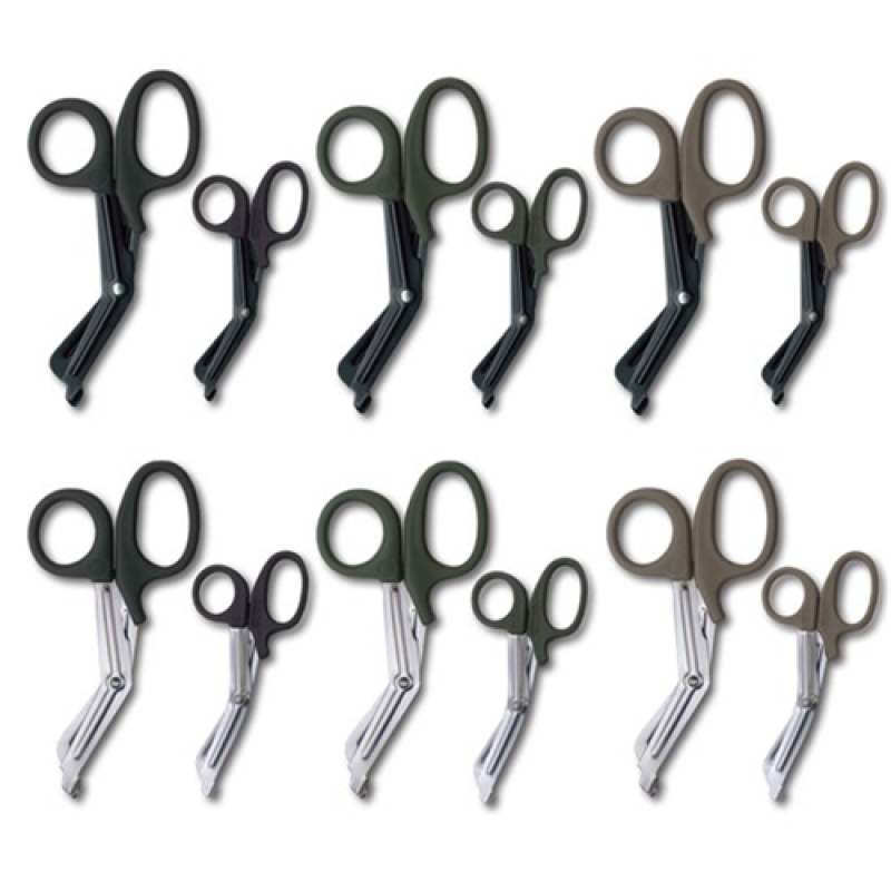 The Deluxe EMS Shears are now available in regular stainless steel blades or all black stainless steel blades. Features contoured handles for control and comfort. Available in black, olive drab, or desert sand handles.