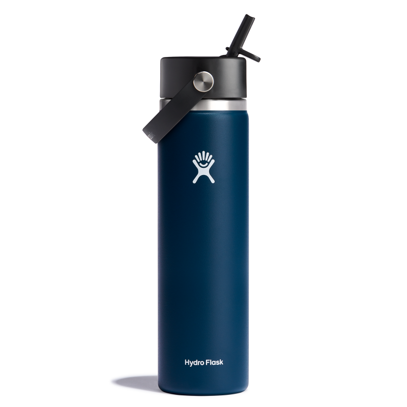 Wide Mouth Insulated Water Bottle w/ Flex Straw Cap (Indigo; 24oz)