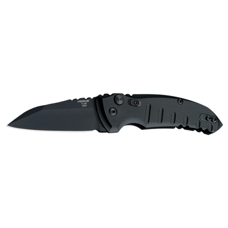 Hogue Automatics offer impressive speed and exceptional reliability. This A01-Microswitch is another addition to Hogue's quality line of automatic folding knives. It features a 2.75 tumbled stonewashed drop point blade and matte black aluminum handles. The Microswitch's unique patent-pending blade retention device allows for one-handed deployment and closure without placing the hand in the path of the blade. The manual safety locks the knife both open and closed to prevent misfiring.