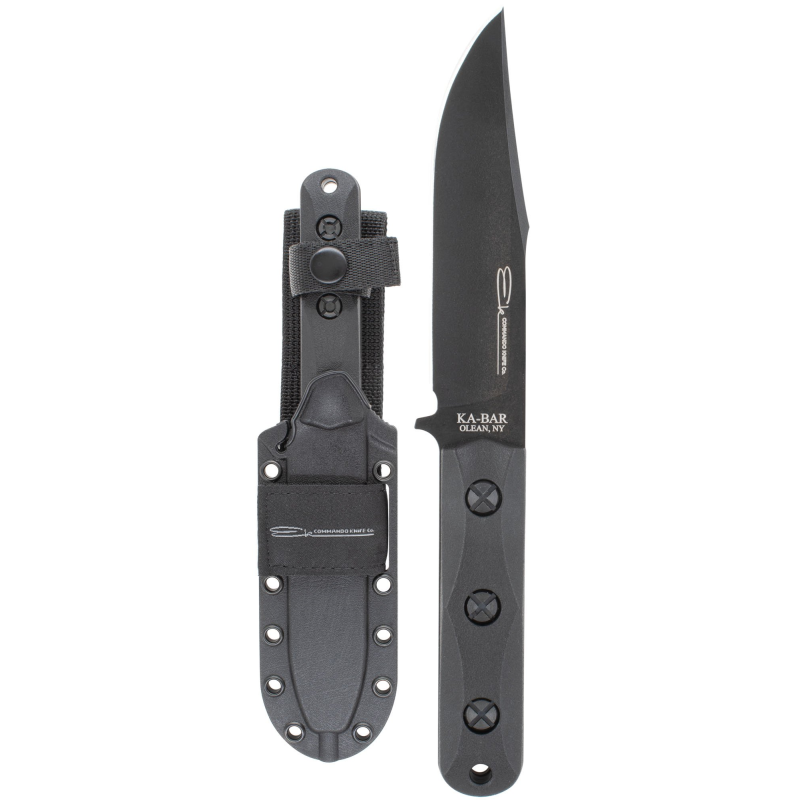The EK50 Short Clip Point has a 1095 Cro-Van clip point blade that measures 5.0625 in length. The EK50 is 9.25 overall and weighs 0.65 lb. A MOLLE compatible Celcon sheath that is manufactured in the USA comes with the EK50. Knife manufactured in the USA with German steel.