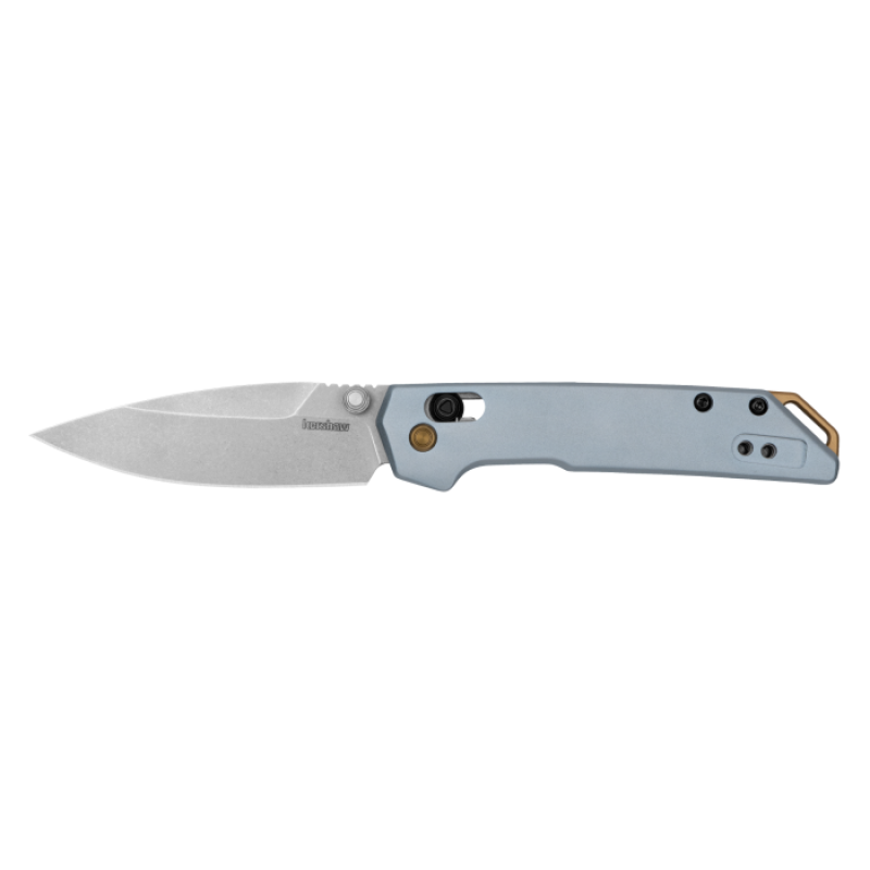 This Iridium goes mini for lightweight use and portability. A cool and casual everyday carry, it sports an ice blue handle with gold color accents. Activate with the thumb stud and experience buttery smooth deployment with KVT ball bearings. Ultra-secure DuraLock technology locks the blade in place. The D2 spear point blade is ideal for everyday cutting tasks. When your work is done, slide the lock back to safely close the Iridium and carry it with a reversible deep-carry pocket clip. If you’re looking for a light, easy EDC, go with the mini Iridium.