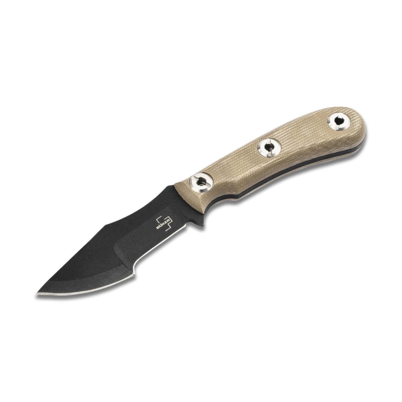 Less size, less weight, more action! That is the motto of the Boker Plus Micro Tracker 2.0. This updated version is equipped with a full tang blade, held by sturdy screws. The blade, made of 1095 carbon steel and corrosion-resistant powder coating, is designed for uncompromising outdoor use, just like its big brothers! Supplied with belt adapter and custom-fit Kydex sheath.