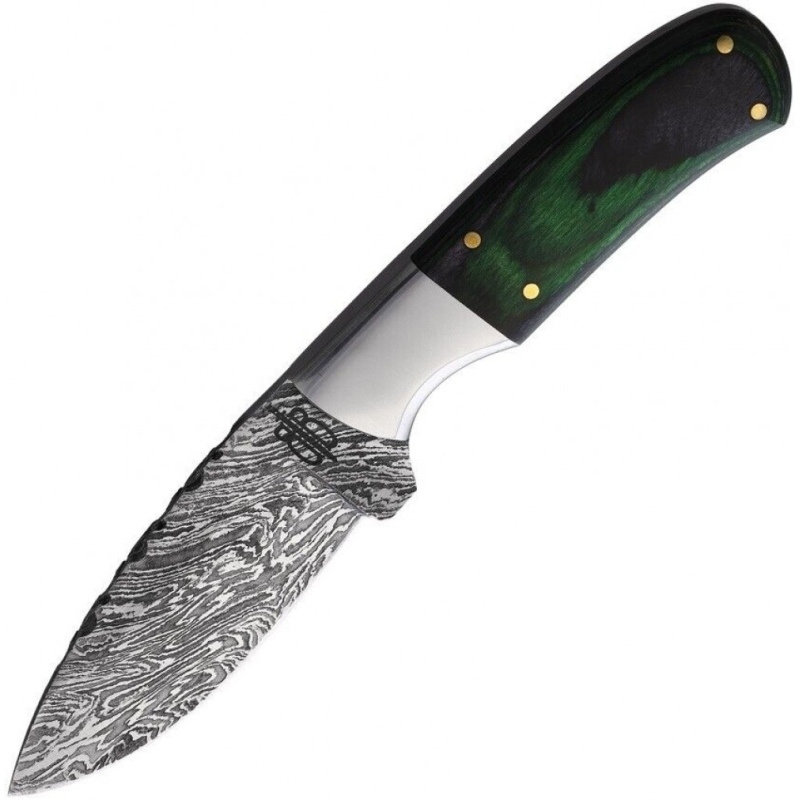 This knife features a 256-layer Damascus (1095 & 15N20) steel blade with an extended belly edge and decorative jimping like grooves along its spine. Maple Burl handle makes the feel comfortable. Leather Sheath with Belt Loop Included