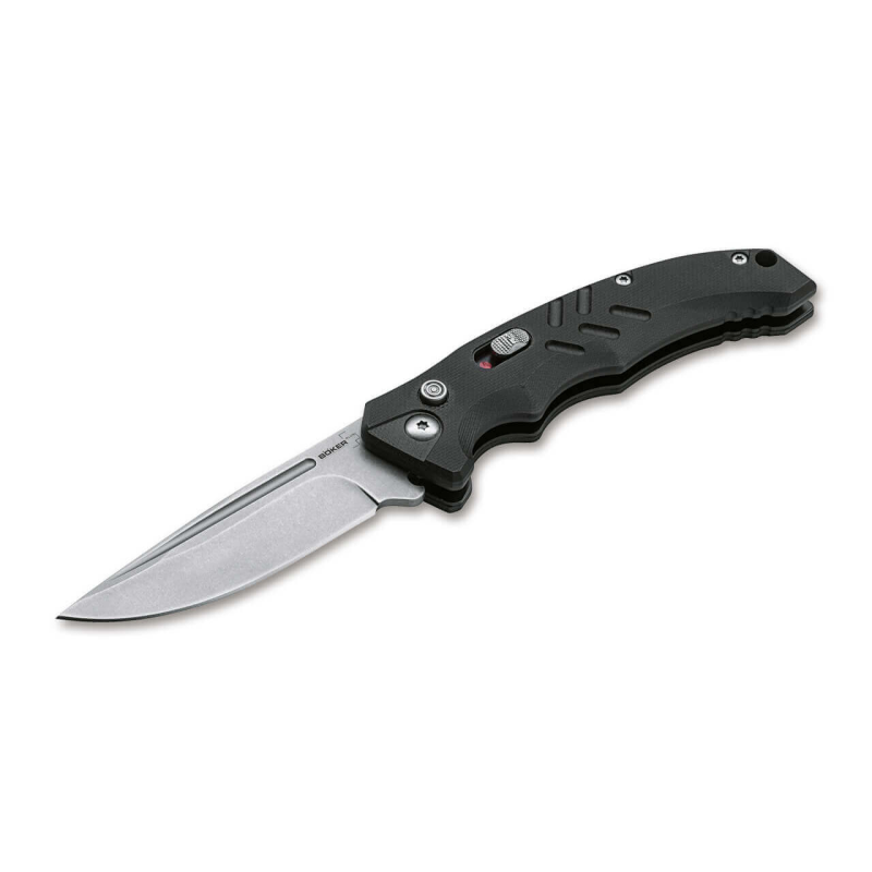The Boker Plus Intention was designed as a versatile tactical knife that can easily handle your everyday cutting tasks. The D2 blade swings open at the push of a button by means of the tensioned spring behind it, and is secured with a sliding lock to prevent accidental opening or closing. The ergonomically shaped handle is made from textured G10, with a fluted thumb rest and deep finger choil for a secure hand position. With a lanyard hole and pocket clip