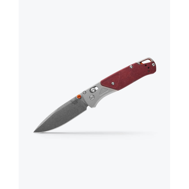 We decided to mix it up a little bit with this premium Bugout and, like, literally mix some materials. Inspired by the earthy tones found in our outdoor gear, backpacking kits, and accessories around the campsite, the new 535-09 Bugout sets itself apart from others we’ve built thanks to handle scales that contrast a gray anodized 6061-T6 aluminum bolster with a Redstone Richlite onlay, plus a few other added pops of color found in the orange anodized thumb stud and backspacer. Featuring a premium CPM-S90V stainless steel stonewash polished blade, this unique 535-09 Bugout has the same stunningly lightweight and compact feel as its predecessors and remains the ideal EDC on any outdoor adventure from the mountain trail to tasks around town. Over time, Richlite, a paper composite material, will develop a natural patina over time, altering the original color of the material. "Patina” is a natural occurrence in the product that can either darken or lighten depending on exposure to light.