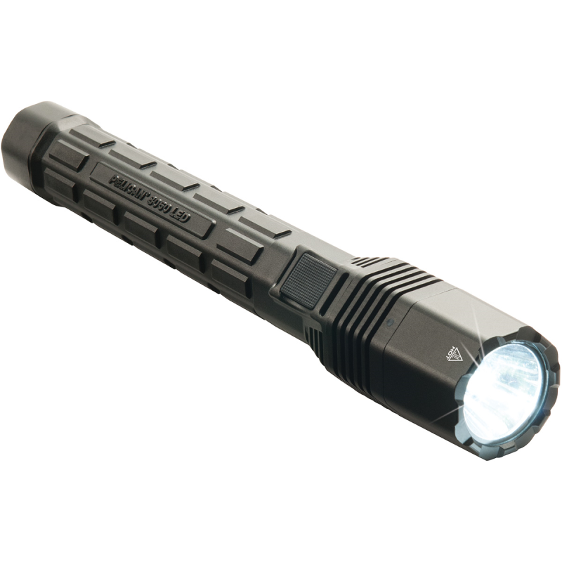 Introducing the all new full size, full power and self programmable 8060 LED. Packed with the most advanced technology found in any duty light on the market. Powered by a rechargeable NiMH battery pack or 4C cells, the Pelican 8060 LED is the longest running duty light today. Full size equals full performance and, at almost 13 inches in length, you can be sure that your 8060 will deliver in any emergency. With over 1070 lumens available at your fingertips and up to 60 hours of useful light will ensure that your light will keep burning even when all hell breaks loose. Count on the 8060's rugged dependability, and a full list of features that includes a high/strobe/medium/low/flashing mode options, no-slip grenade grip and it's self programmable. This allows you to personalize the operation to suit your needs. The all new 8060 also includes a built in low battery level indicator. Two different optional in-vehicle charger cables are available as well. The Pelican 8060 LED flashlight, where brawn meets brains. If power is unavailable for recharging purposes, the 8060 can utilize 4 "C" cell alkaline batteries (not included). The 8060 LED comes standard with desk/dash charger base, rechargeable battery, and 110V wall charger.