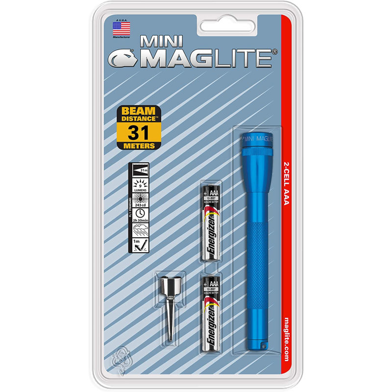 SP22 Mini Maglite 2 AAA-Cell Flashlight w/ Pocket Clip (Blue; Blister)