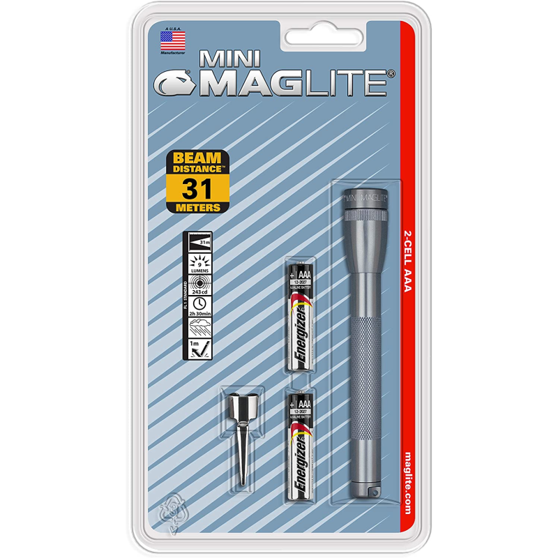SP22 Mini Maglite 2 AAA-Cell Flashlight w/ Pocket Clip (Gray; Blister)