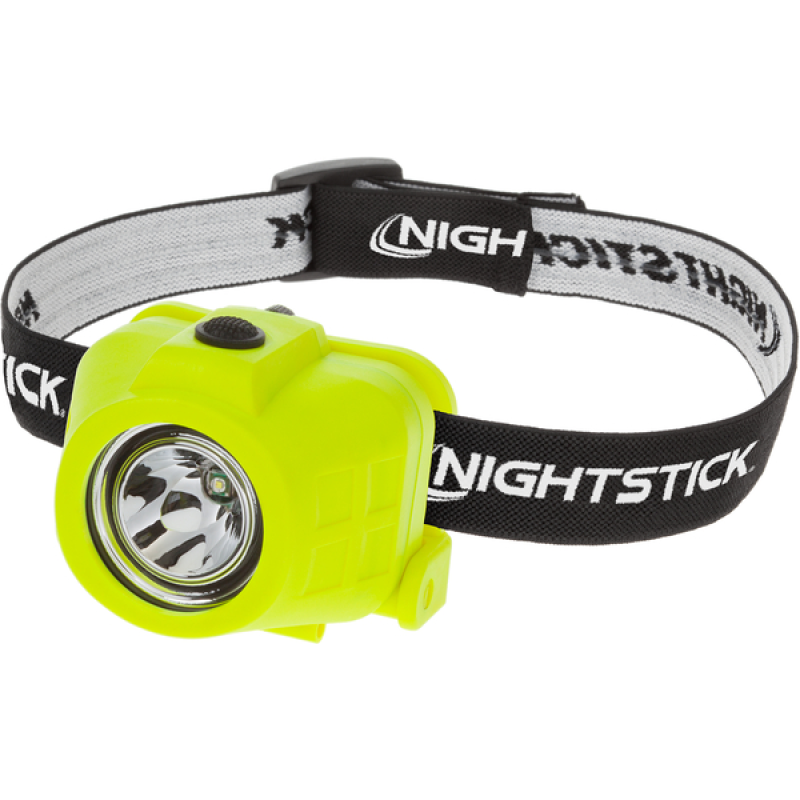 This 3 AAA dual-function headlamp is cETLus, ATEX, INMETRO and IECEx listed Intrinsically Safe. This headlamp features a multi-position tilt head design and includes an elastic head strap with a non-slip lining and a heavy-duty rubber head strap for use on a hard hat. The top mounted switch provides user selectable high or low brightness spotlight operation. Power comes from 3 AAA batteries (included). Headlamp is 90 lumens for 13 hours on high and 50 lumens for 22 hours on low.