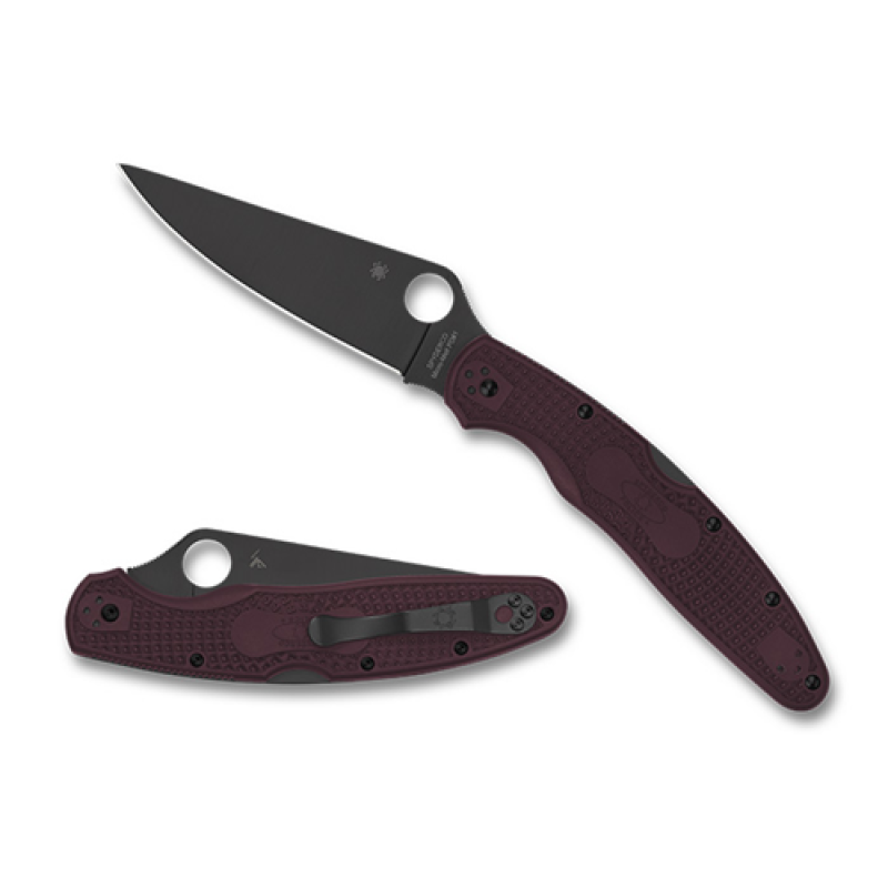 This limited-edition Sprint Run expression of the Police 4 Lightweight showcases Carpenter® Technologys Micro-Melt PD#1, an air-hardening, cold-work die steel specially formulated to offer both superior wear resistance and toughness. Its advanced alloy composition is further enhanced by the CarTech® Micro-Melt powder metal process, which ensures an ultra-fine, extremely homogeneous grain structure. Functionally equivalent to CPM® CRU-WEAR®, this high-performance steel is the heart of this knifes full-flat-ground PlainEdge blade. To make this elite Police 4 Lightweight even more distinctive, its blade is cloaked in a non-reflective titanium carbonitride (TiCN) coating and its fiberglass-reinforced-nylon (FRN) handle is injection molded in a deep burgundy color. Consistent with this stunning black-and-burgundy theme, its four-position pocket clip, lock bar, and handle hardware also sport durable black coatings.