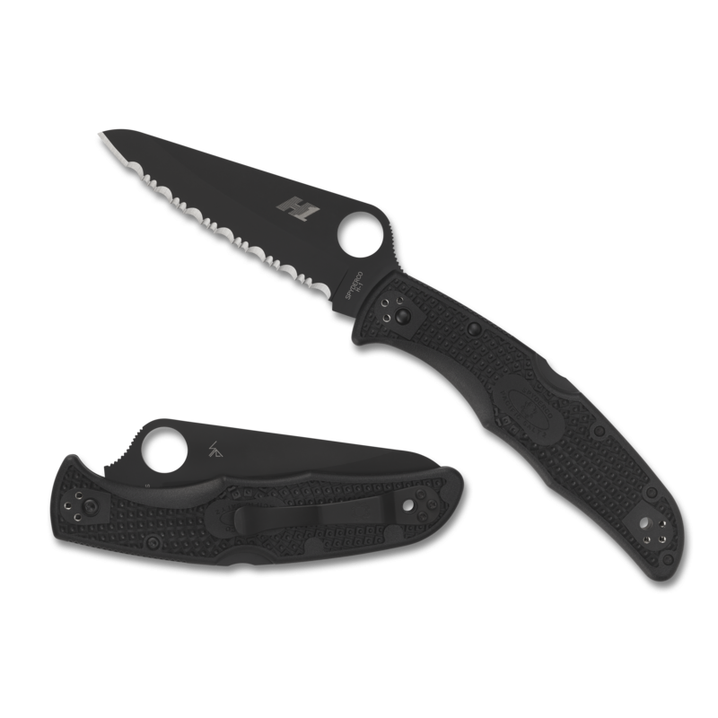 A dynamic combination of the third-generation Endura one-piece handle design and the ultra-corrosion-resistant properties of H-1 steel, the original Pacific Salt was an incredibly capable full-service folding knife. The original black-bladed model endured extensive military testing to become an issue item in aircrew survival kits. Following that proud tradition, the Pacific Salt 2 Black Blade includes a high-traction Bi-Directional Texture pattern, enhanced handle ergonomics, and a versatile four-position pocket clip. In addition to these features, this knife integrates an H-1 blade with a linerless handle and a non-reflective titanium carbonitride (TiCN) blade coating and matching black coatings on its clip and hardware. This knife was born to perform in and around the water.