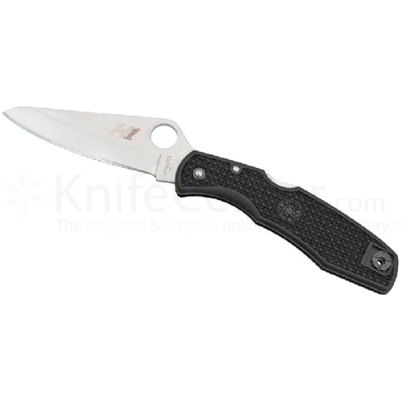Spyderco's C91 Pacific Salt is designed to offer reliable high performance with a never-rust H-1 steel blade. Now it's available with a black coated blade, lessening the steel's reflective qualities and subduing the blade's presence. Spyderco's Salt Series shines in fresh and saltwater staying rust-free even if put away wet. Hollow-ground, the H-1 blade is PlainEdged and coated in long-lasting black carbonitride. It's similar in shape and size to Spyderco's bestselling Endura model but with more rounded tip.