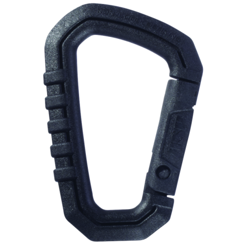 Mini Carabiners are available in six colors (Black, Gray, Coyote, Neon Yellow). They provide a rapid way to label specific bags of equipment in the training, action or tactical environment. As a connector, the designs are lightweight, rugged, robust and rustproof. They are not designed for climbing. However, they will support 110 lb. Each design is the result of sophisticated stress analysis. Each angle, rib and recess serves a specific purpose. The result is a series of easily identified supports for the trainer, adventurer or tactical officer.
